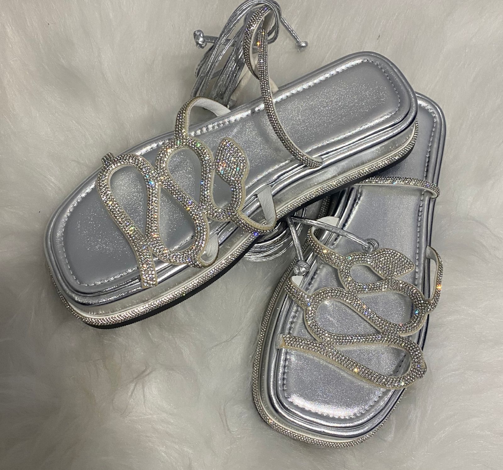 A papete Anaconda com alças em detalhe de cobra nacarada e strass é puro glamour moderno. 🐍🤍